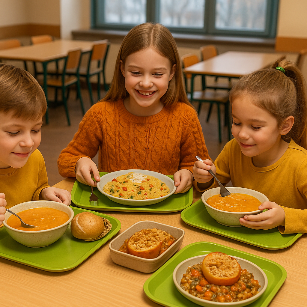 Skvělým základem zimního jídelníčku ve školních jídelnách jsou obiloviny, luštěniny a kořenová zelenina – potraviny, které dodávají teplo do organismu a zároveň spoustu výživných látek.