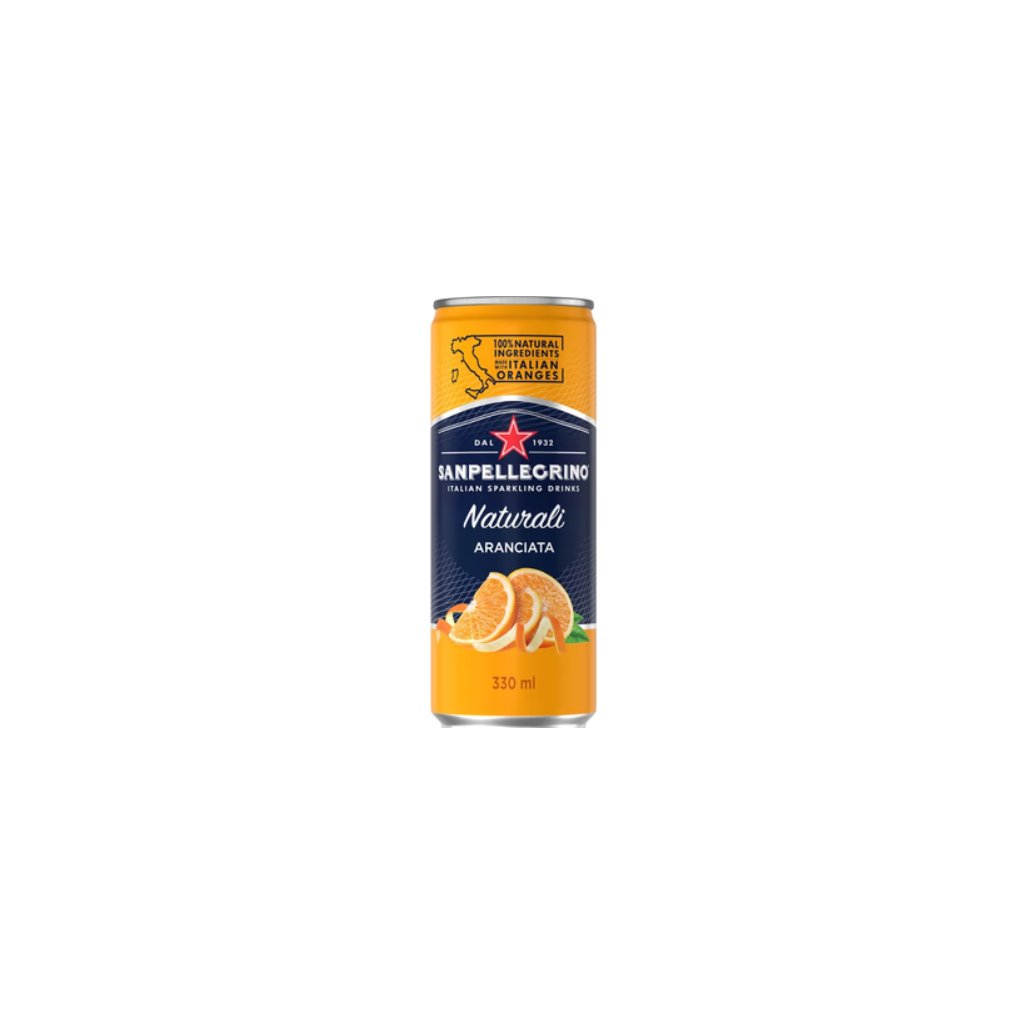 San Pellegrino - nealkoholický perlivý nápoj s příchutí pomerančů.